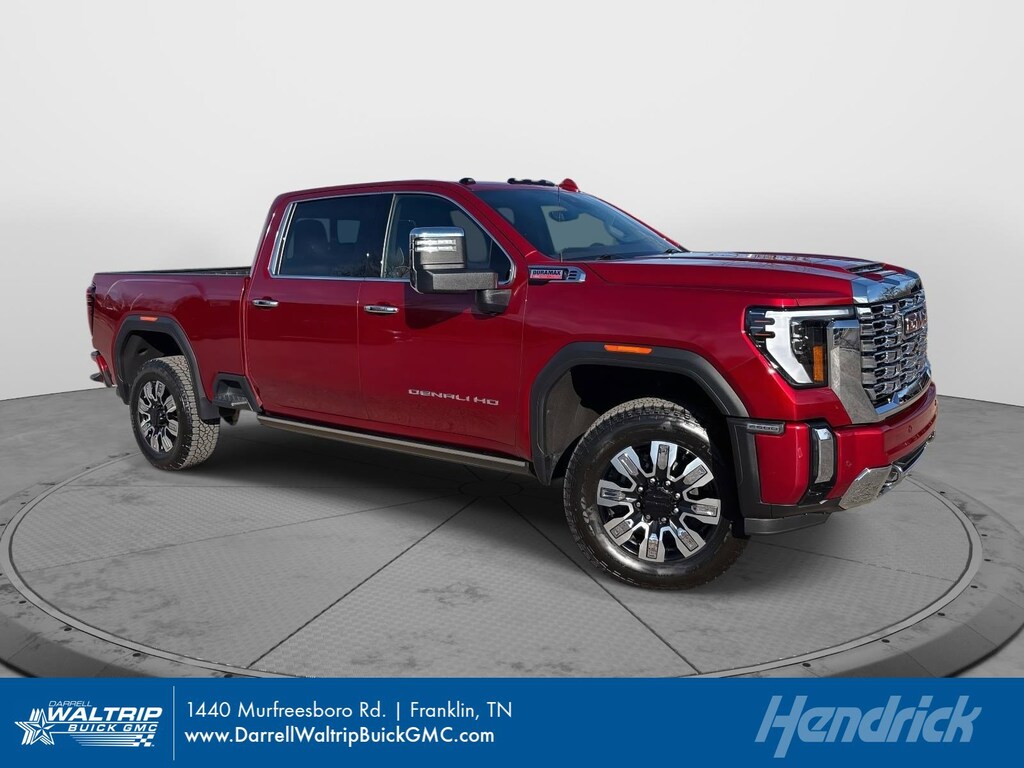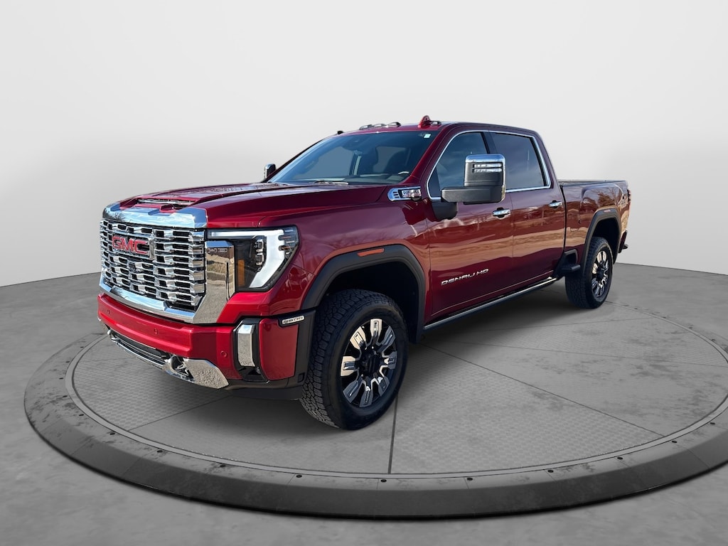 ENGINE, DURAMAX 6.6L TURBO-DIESEL V8, B20-DIESEL COMPATIBLE (470 hp [350.5 kW] @ 2800 rpm, 975 lb-ft of torque [1322 Nm] @ 1600 rpm) (Includes (K05) engine block heater.), TECHNOLOGY PACKAGE includes (DRZ) Rear Camera Mirror and (UV6) Multicolor 15 Diagonal Head-Up Display (Includes (KSG) Adaptive Cruise Control. ASSIST STEPS, POWER-RETRACTABLE, WITH LED PERIMETER LIGHTING AND BRIGHT ACCENT, AUDIO SYSTEM, 13.4 DIAGONAL PREMIUM GMC INFOTAINMENT SYSTEM WITH GOOGLE BUILT IN APPS SUCH AS NAVIGATION AND VOICE ASSISTANCE includes color touch-screen, multi-touch display, AM/FM stereo, Bluetooth® streaming audio for music and most phones; featuring wireless Android Auto® and Apple CarPlay® capability for compatible phones (STD), TRANSMISSION, ALLISON 10-SPEED AUTOMATIC. GMC Denali with Volcanic Red Tintcoat exterior and Atmosphere/Brownstone interior features a 8 Cylinder Engine with 470 HP at 2800 RPM*.