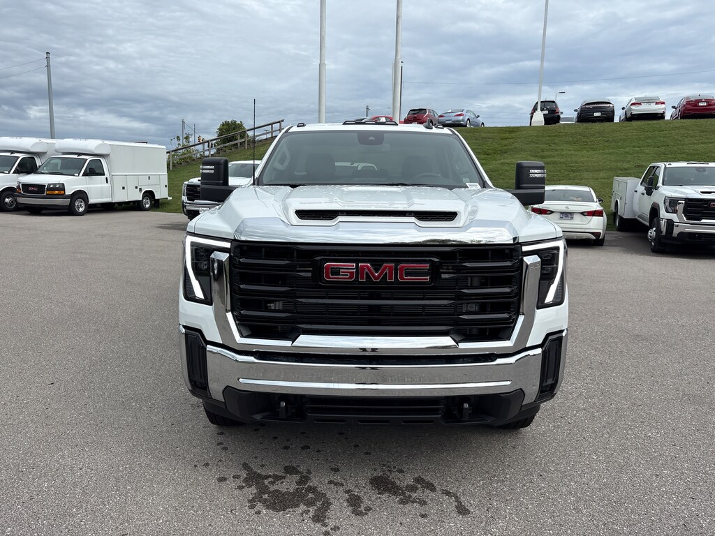 ENGINE, DURAMAX 6.6L TURBO-DIESEL V8 B20-Diesel compatible, (470 hp [350.5 kW] @ 2800 rpm, 975 lb-ft of torque [1322 Nm] @ 1600 rpm) (Includes (K05) engine block heater. CONVENIENCE PACKAGE includes (AKO) tinted glass and (C49) rear-window defogger, AUDIO SYSTEM, GMC INFOTAINMENT SYSTEM WITH 7 DIAGONAL COLOR TOUCH-SCREEN, AM/FM STEREO with seek-and-scan and digital clock, includes Bluetooth® streaming audio for music and select phones; featuring wired Android Auto® and Apple CarPlay® capability for compatible phones (STD), TRANSMISSION, ALLISON 10-SPEED AUTOMATIC. GMC Pro with Summit White exterior and Jet Black interior features a 8 Cylinder Engine with 470 HP at 2800 RPM*.
