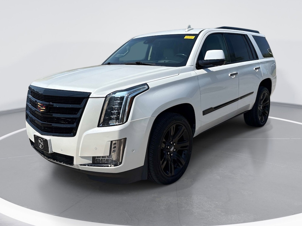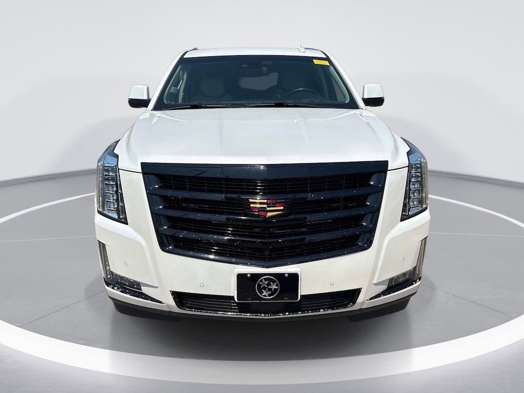 LPO, ALL-WEATHER FLOOR LINER, 1ST AND 2ND ROWS bright finish badge, CADILLAC USER EXPERIENCE WITH EMBEDDED NAVIGATION AM/FM stereo with 8 diagonal color information display featuring touch response, haptic feedback, gesture recognition, Natural Voice Recognition, Phone Integration for Apple CarPlay® and Android Auto® capability for compatible phone, Collection and Teen Driver. Five USB ports, including one in the articulating storage door/bin and auxiliary audio port (STD), ENGINE, 6.2L V8 WITH ACTIVE FUEL MANAGEMENT Spark Ignition Direct Injection (SIDI) and Variable Valve Timing (VVT), includes aluminum block construction (420 hp [313.2 kW] @ 5600 rpm, 460 lb-ft of torque [621 N-m] @ 4100 rpm) (STD), TRANSMISSION, 10-SPEED AUTOMATIC electronically controlled with overdrive, tow/haul mode and tap up/tap down shifting (STD). Cadillac Premium Luxury with Crystal White Tricoat exterior and Shale with Jet Black Accents interior features a 8 Cylinder Engine with 420 HP at 5600 RPM*.